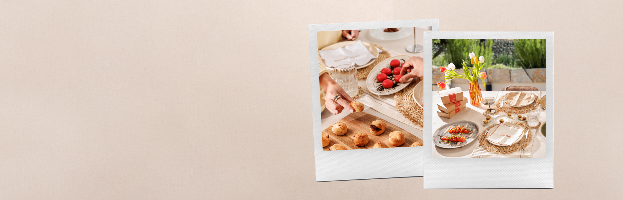 - Productos: Máxima flexibilidad. Elige y combina nuestros platos de forma individual según tus gustos y el número de invitados.