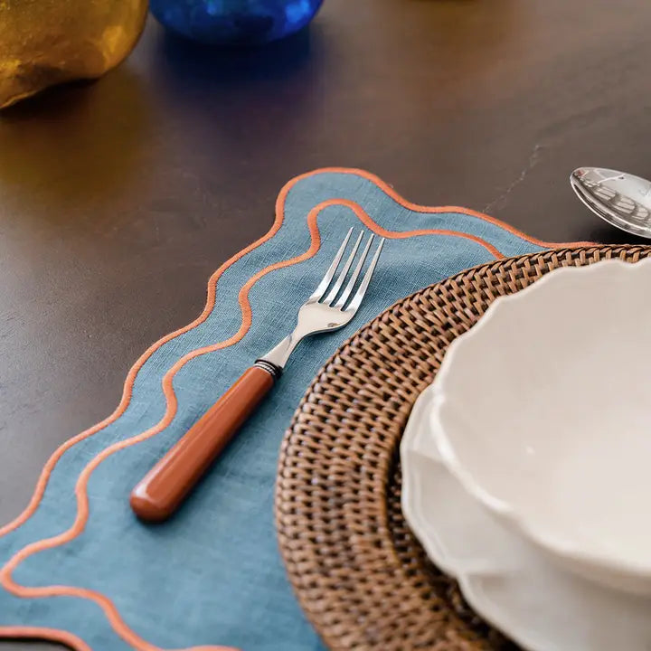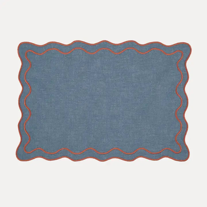 Mantel Individual Lino Ondulado Beja: Azul & Terracota | Hecho en Portugal