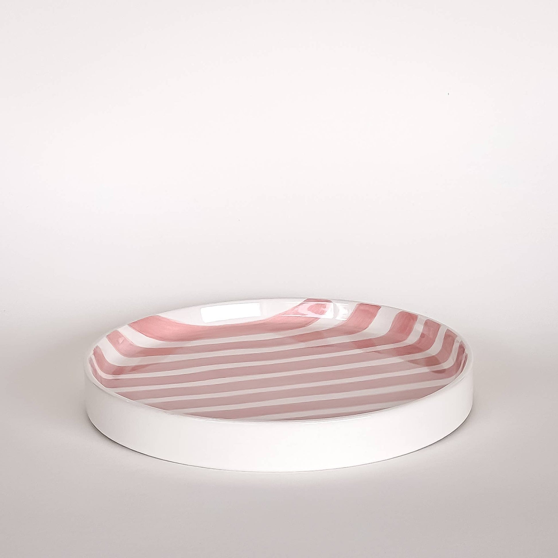 Plato Artesanal Rayas Rosas: Cerámica Italiana Pintada a Mano