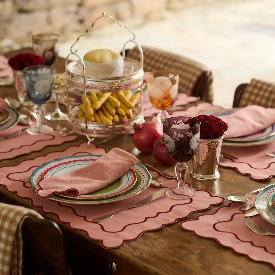 Servilleta Lino y Algodón Ondulado Lino Rosa & Rojo | Hecho en Portugal